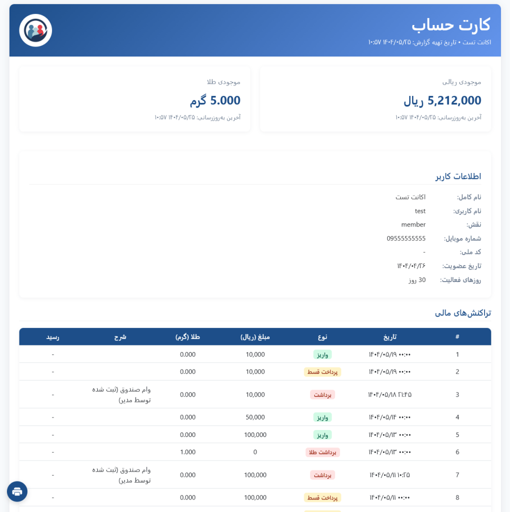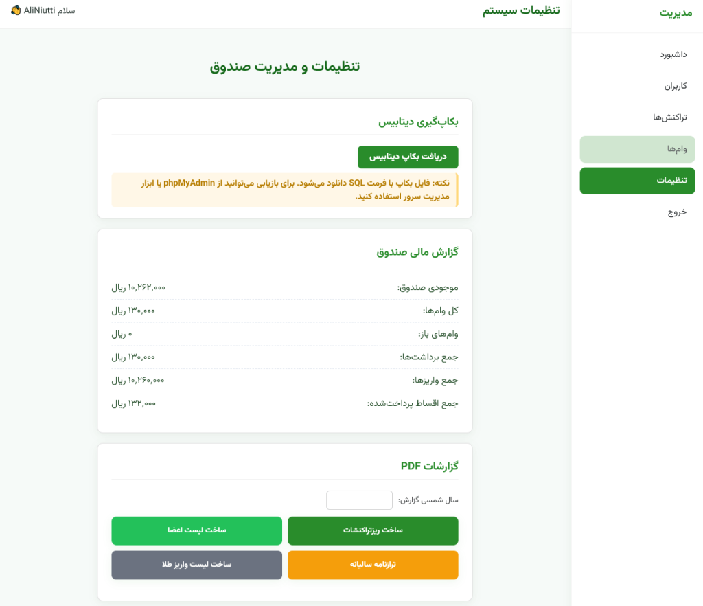 وبسایتی جهت مدیریت تراکنشات و وام ها به همراه دسترسی آسان برای همه اعضا صندوق، همچنین قابلیت گزارشگیری برای ارگان های مختلف
